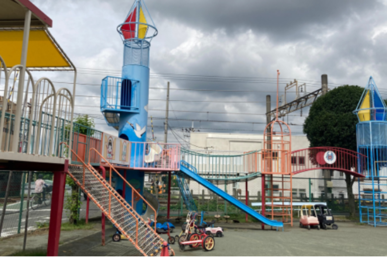 駅チカの園でありながら、いっぱい走り回ることが出来る園庭とたくさんの遊具があります!